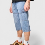Vintage rave long length denim capri shorts | Light stone wash blue jeans mens | 90s Y2K 2000s style multi pocket cargo shorts | Small 31 |
